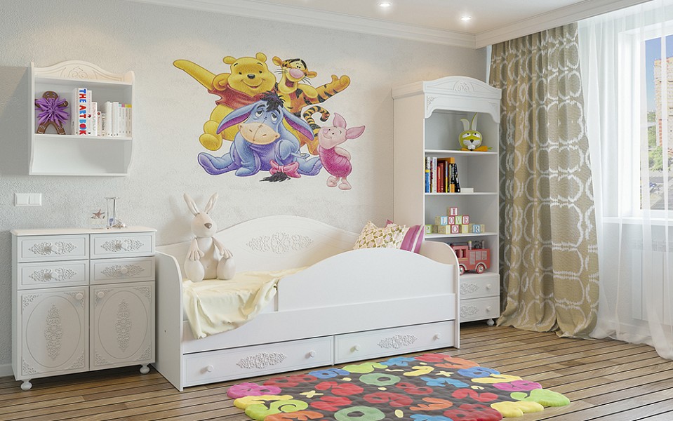 Все элементы выполнены в едином стиле, что позволяет создать гармоничное и уютное пространство для ребенка.
