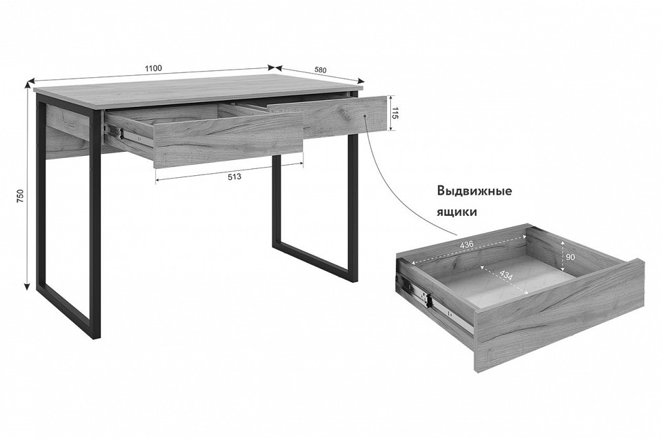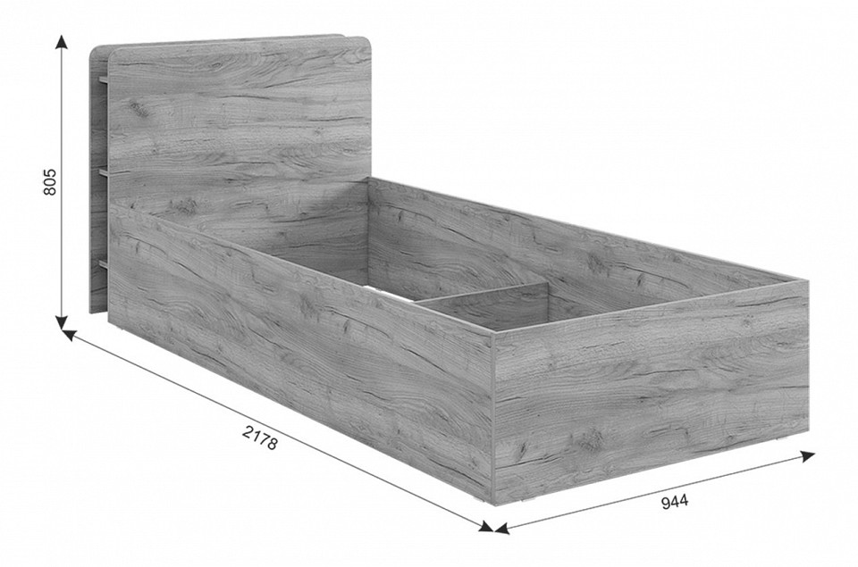 Компоненты, входящие в комплект: кровать односпальная — 2178x944x805 мм, стол письменный — 1100x580x750 мм, шкаф платяной — 864x500x2170 мм