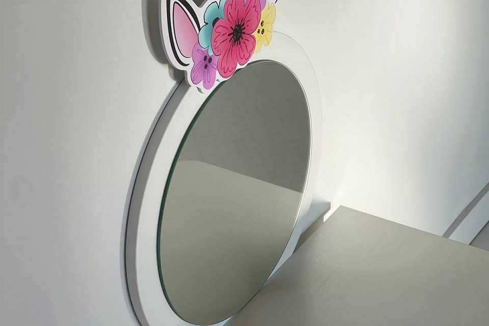 Дополнительные параметры: зеркало — 4 мм, опоры — массив березы, сиденье — пенополиуретан 30 мм ручка — металл с пенополиуретановым элементом, декоративный элемент — полимер 4 мм с УФ-печатью, тип направляющих: шариковые, высота стола — 540 мм