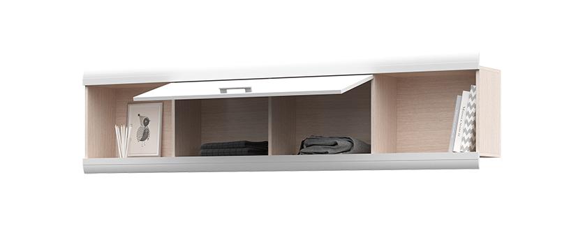 Отдельного внимания заслуживает конструкция модели, в которой имеются и глухие секции и открытые полочки, на которых можно будет расставить книги, элементы декора, статуэтки, награды, фоторамки и прочее экспонаты, которые являются предметами гордости для владельца комнаты.
