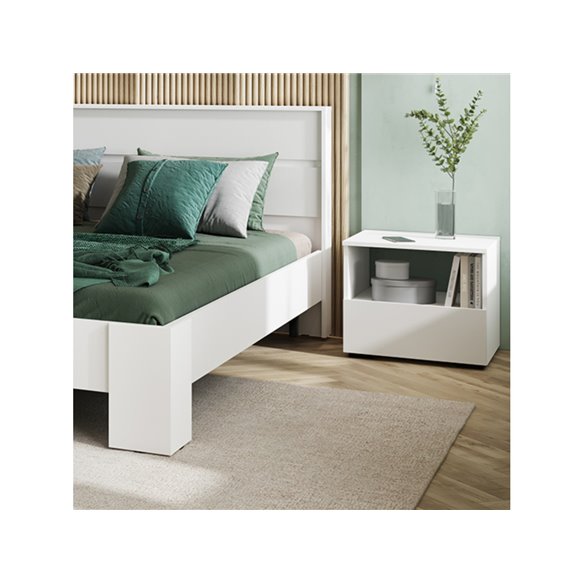 Прикроватная тумбочка Хелен ТБ 01 отлично впишется в интерьер спальни и поможет держать под рукой необходимые мелочи. Она состоит из одного выдвижного ящика и открытой полки, а на ее поверхности можно разместить часы или украсить в общем стиле комнаты.