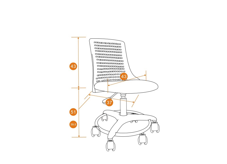 высота от пола до сиденья 395-490 мм высота спинки — 355 мм ширина сиденья 430 мм