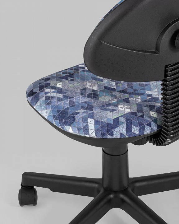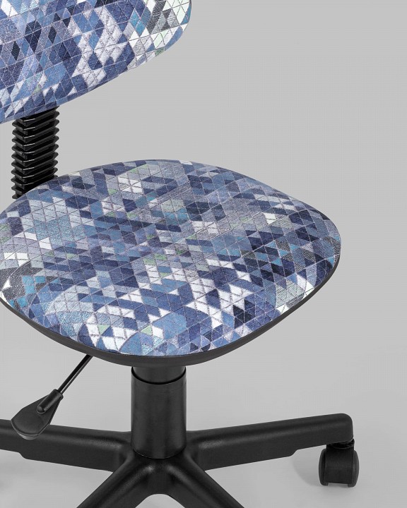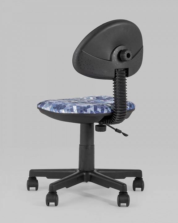 Механизм качания — пружинно-винтовой. Эргономичная форма спинки оказывает хорошую поддержку. Благодаря отсутствию подлокотников кресло можно полностью задвинуть под любой письменный стол. Материал роликов — полимер.