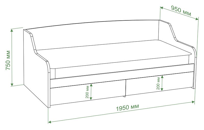 Два выдвижных ящика позволяют хранить большое количество вещей и игрушек. Матрас в комплект не входит, его необходимо приобретать отдельно.