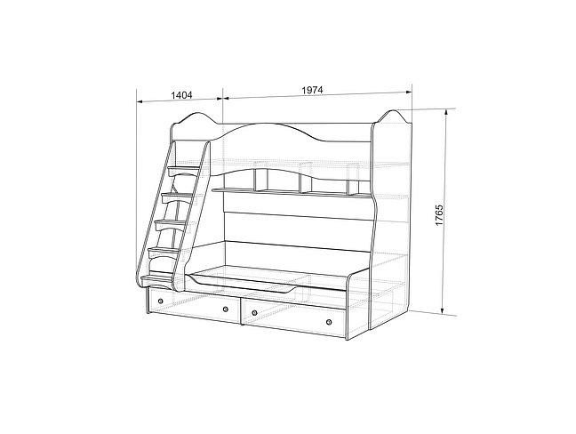 Компоненты, входящие в комплект: лестница, шторка декоративная, 2 основания, 2 ящика для белья