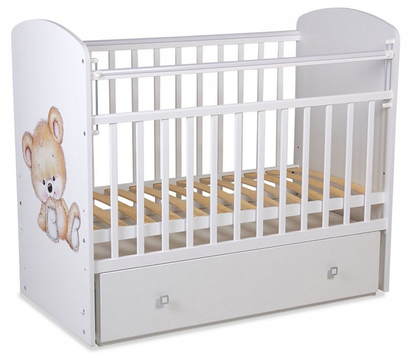 Дополнительное описание: Кроватка детская Фея 750 выполнена в классическом белом цвете, которая гармонично впишется в любой интерьер детской комнаты и станет незаменимым помощником родителям. Модель дополнительно оборудована пластиковыми накладками на бортики, чтобы малыш не испортил зубки. Реечное основание модели создает естественную вентиляцию матраса и обеспечивает правильное формирование позвоночника малыша. Ложе кроватки регулируется в 3-х положениях по высоте: когда малыш научится переворачиваться ложе следует опустить в среднее положение, когда научится сидеть – в нижнее. Благодаря наличию в комплекте колёсиков, два из которых идут со стопором, кроватки являются мобильными, и их можно бесшумно перемещать в любое удобное место без особых усилий. Модели оснащены полозьями для качания, обеспечивающими мягкие и плавные движения. Для доступа к полозьям необходимо отсоединить все 4 колеса.