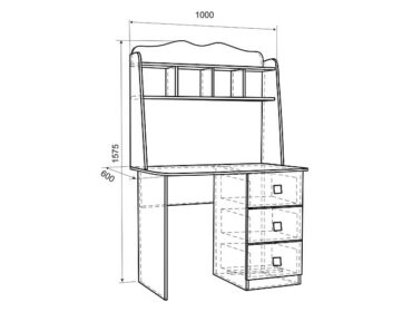 Компоненты, входящие в комплект: надстройка: 2 полки, тумбочка: 3 ящика