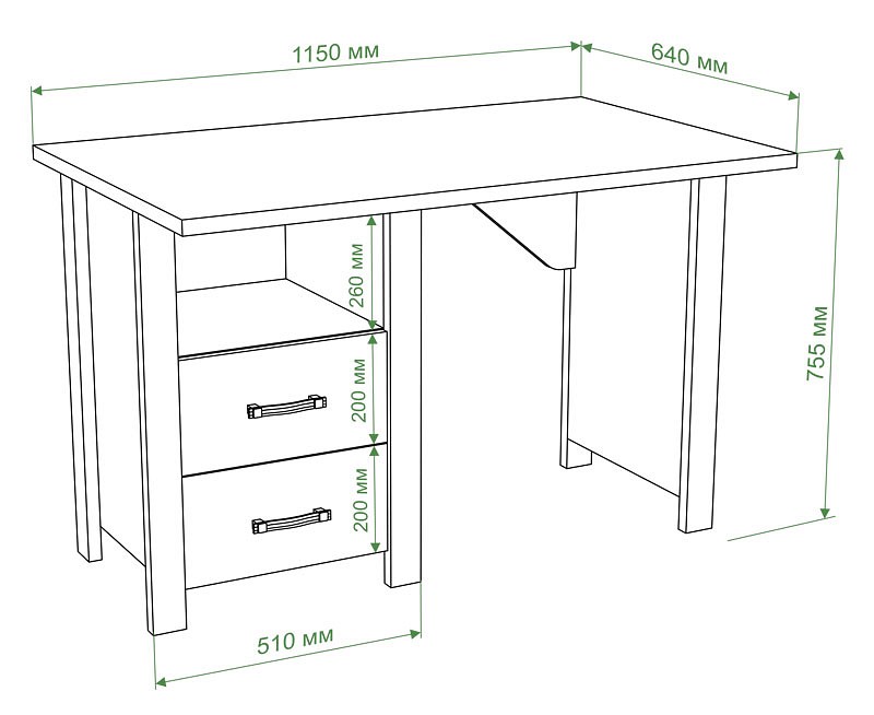 Компоненты, входящие в комплект: тумбочка:, 1 полка, 2 ящика