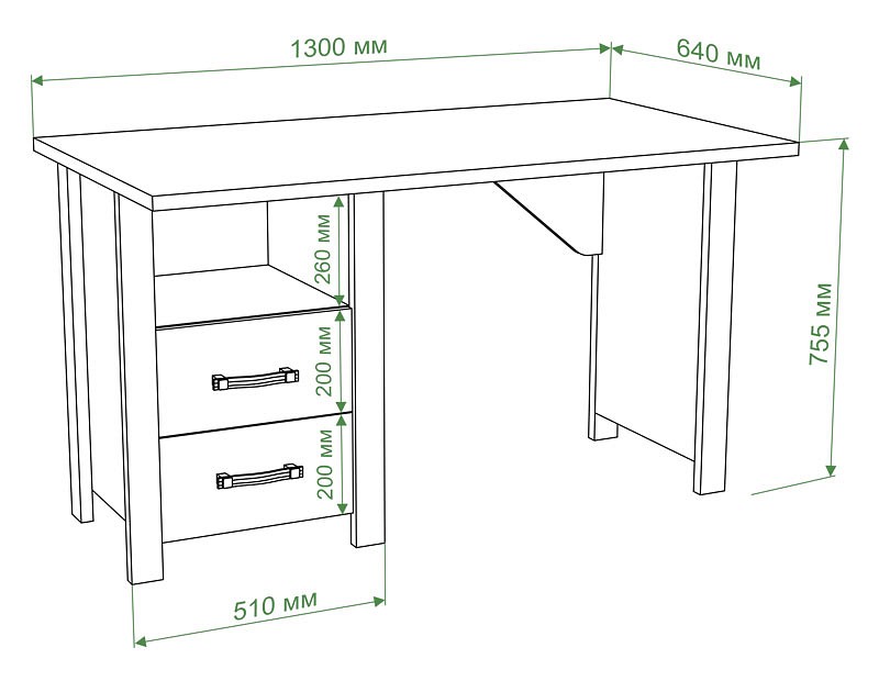 Размеры, мм: 1300x640x755