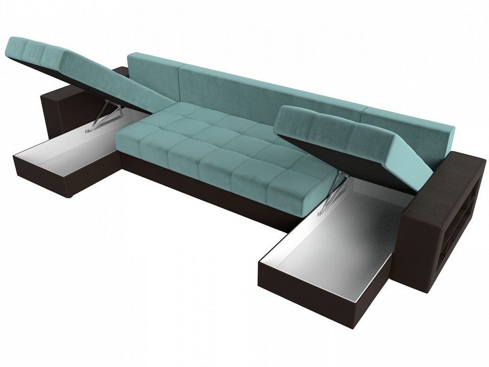 Полки справа. Подушки, представленные на фото, входят в комплект.