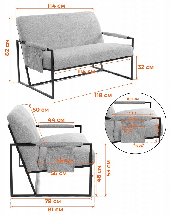 Дополнительные параметры: ширина сиденья — 1140 мм, глубина сиденья — 560 мм