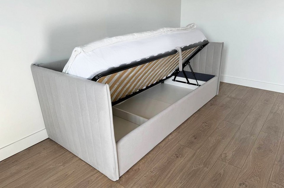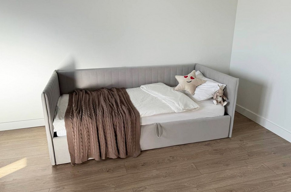 Состоит из: мягкого каркаса, подъемного механизма. Кровать с подъемным механизмом Твикс (Софа) 90х200 см — это идеальное решение для компактных пространств, сочетающее в себе стиль и функциональность. Мягкие изголовье, корпус и боковины обеспечивают комфорт и создают уютную атмосферу в вашей спальне или детской комнате. Изготовленная из качественного ДСП толщиной 16 мм, эта кровать отличается прочностью и долговечностью. Обивка из велюра, в сочетании с современным пенополиуретаном (ППУ), придает изделию изысканный вид и приятные тактильные ощущения. Подъемный механизм позволяет легко скрыть под матрасом дополнительное пространство для хранения вещей — идеально для хранения постельного белья, игрушек или сезонной одежды. Кровать Твикс станет не только практичным элементом интерьера, но и стильным акцентом в вашем доме, привнося нотку элегантности и уюта. Матрац в комплектацию кровати не входит.