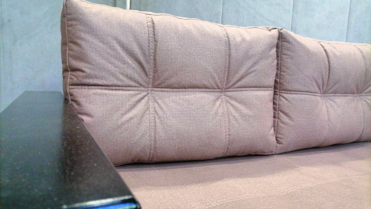 В диван входят две или три большие подушки с отстрочкой ( указывается при заказе)