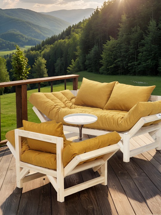 Диван Бинго — это идеальный выбор для современного интерьера дома или квартиры. Созданный с учетом всех ваших потребностей, он обеспечит непревзойденный комфорт и стиль, идеально подходя как для внутреннего, так и для уличного использования. Каркас выполнен из массива дерева, что гарантирует его надежность и долговечность. Мягкие элементы выполнены из прочной и износостойкой ткани, что делает кресло не только комфортным, но и практичным в уходе. Съемные подушки позволяют легко поддерживать его в чистоте.