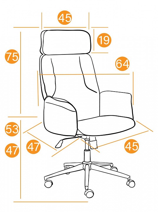 Дополнительные параметры: высота от пола до сиденья — 430-570 мм, высота спинки — 750 мм, ширина сиденья — 450 мм