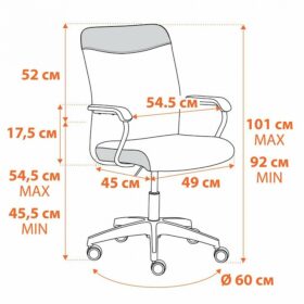 Дополнительные параметры: высота от пола до сиденья 455-545 мм высота спинки — 520 мм глубина сиденья — 450 мм ширина сиденья — 490 мм регулировка высоты