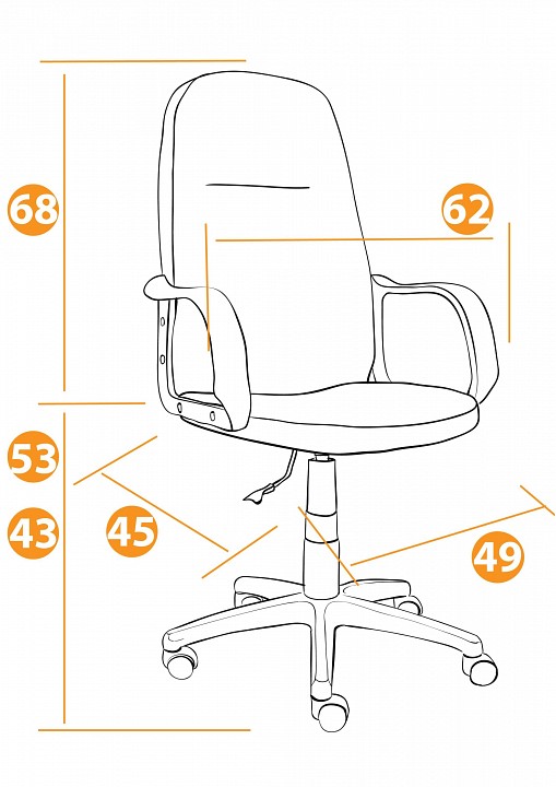 Дополнительные параметры: высота от пола до сиденья — 430-530 мм, высота спинки — 680 мм, ширина сиденья — 490 мм