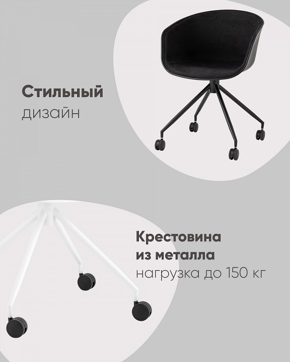 Лаконичное компьютерное кресло Libra в современном стиле. Эта уникальная модель будет прекрасно смотреться как в высокотехнологичной обстановке хай-тек, так и в помещении, оформленном в скандинавском стиле. Белая спинка изготовлена из прочного PP-пластика, внутренняя обивка и подушка на сиденье – из экокожи в черном цвете. Крестовина выполнена из металла, окрашенного порошковой краской в черном оттенке. Кресло оборудовано колесиками для более удобного пользования. Высота сиденья не регулируется и составляет 485 мм.