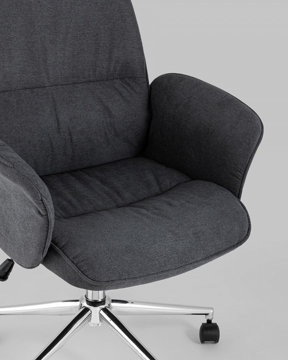 Механизм качания — топ-ган. Удобная спинка оказывает качественную поддержку и позволяет провести в кресле долгое время без усталости. Материал роликов — нейлон.