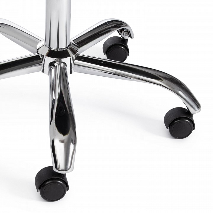 Механизм подъёма без функции качания. Без подлокотников. Крестовина хромированная. Ролики — прорезиненные с хромированной накладкой.