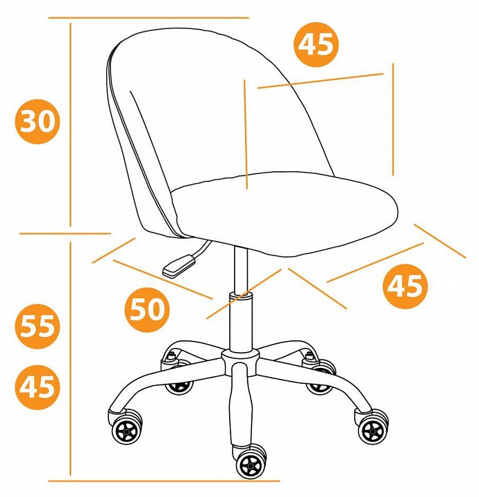 Дополнительные параметры: высота от пола до сиденья — 450-550 мм, высота спинки — 300 мм, ширина сиденья — 450 мм