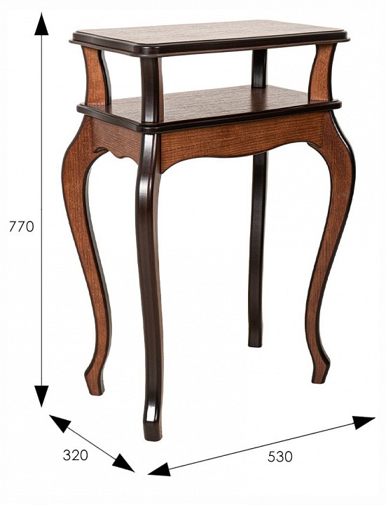 Классическая подставка Берже отлично дополнит традиционный интерьер. Сдержанный дизайн предмета мебели крайне эстетичен. Углы подставки сглажены, ножки изящно изогнуты. Кромку столешницы украшает аккуратный рельеф. Функциональная подставка может служить, как декоративная или цветочная. Полочки предмета мебели станут идеальным местом для телефона, книг, аксессуаров и важных мелочей. Универсальную подставку можно разместить в любой зоне дома, квартиры, дачи или офиса.