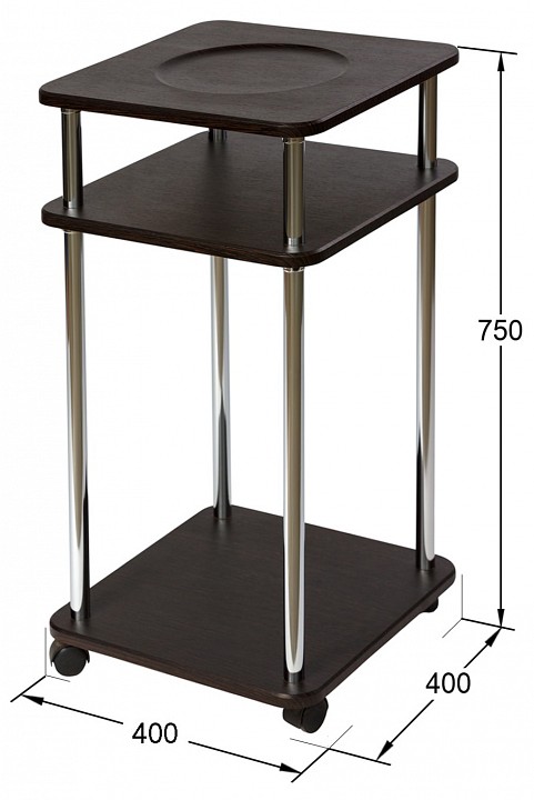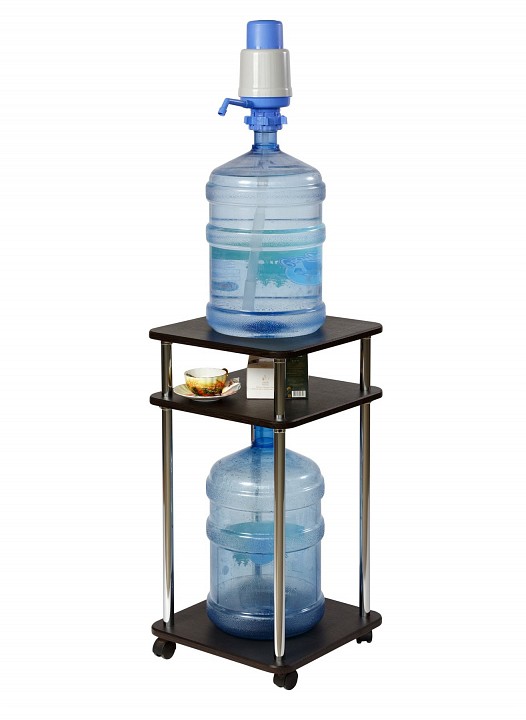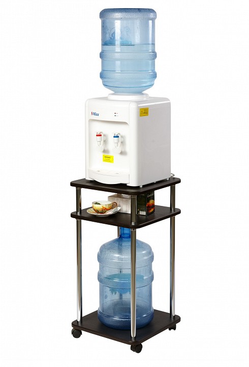 Подставки для воды — отличное решение проблемы размещения кулеров, бутылей дома или в офисе. Подставка под кулер выполнена из материала МДФ 16 мм, опоры-хромированная туба. Высота подставки 750 мм, основание, полка и столешница имеют квадратную форму размером 400х400 мм. Подставка мобильна благодаря основанию на колесной опоре. Данная модель дополнена регулируемой по высоте полкой. Подставка рассчитана на кулер с бутылью и еще на одну запасную бутыль, что очень важно для экономии места дома или офиса. Продукция поставляется в разобранном виде, упакованная в гофрокартон. В комплект входит вся необходимая фурнитура и удобная инструкция для сборки.
