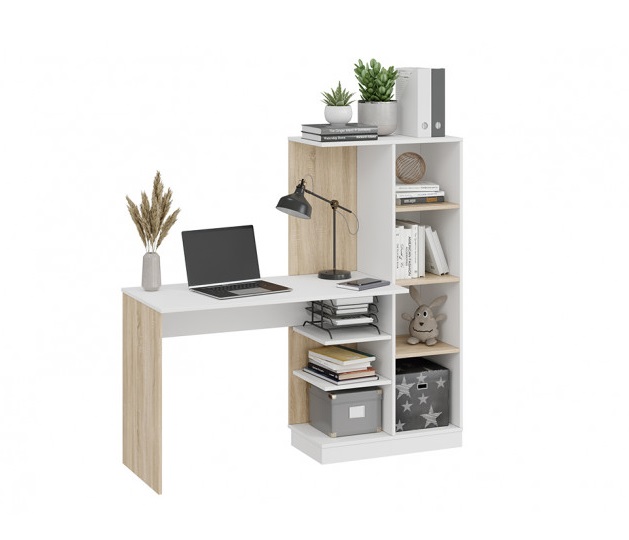 Стол «Бейсик» состоит из удобного компьютерного стола с тремя полками соединенного с пеналом с распашной створкой, идеально подходящими под любой интерьер.