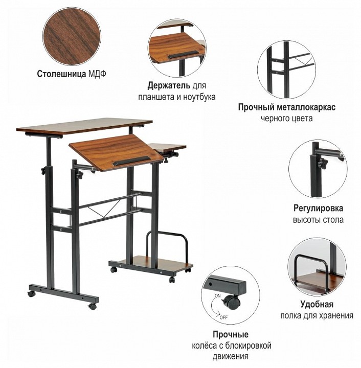Дополнительные параметры: раздельные поверхности для клавиатуры и мыши можно отрегулировать под разным углом, ограничитель не позволяющий клавиатуре соскальзывать, регулировка высоты