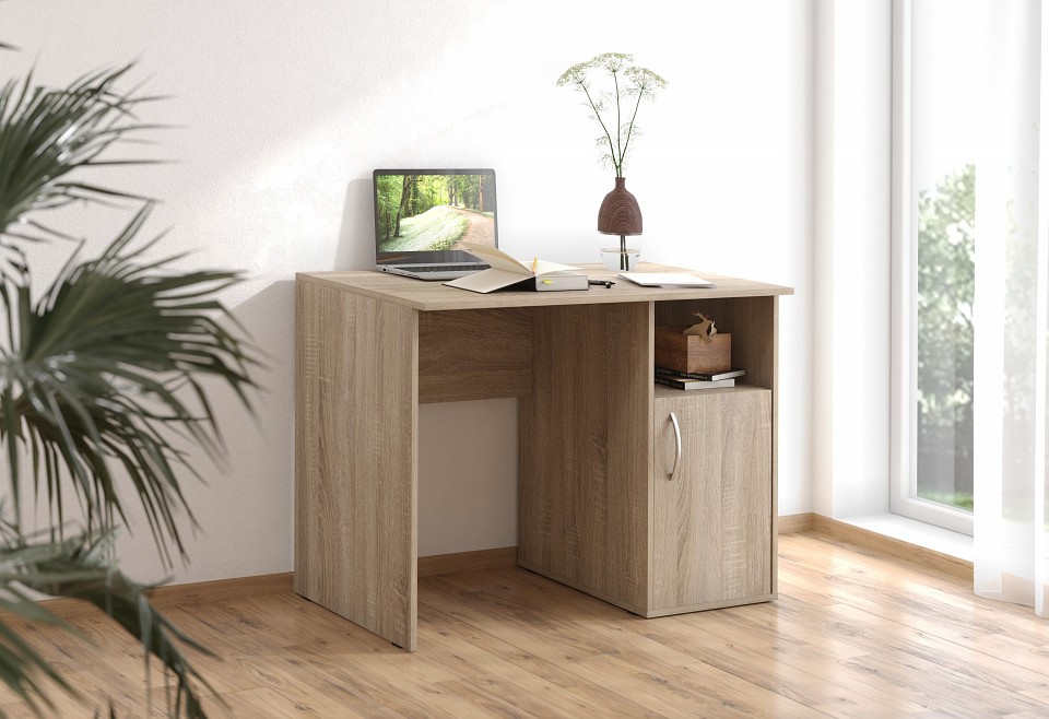 Классический письменный стол с двухсекционной тумбой. Оптимален и для работы, и для развлечений. Скругленные передние углы столешницы обеспечивают дополнительную безопасность.