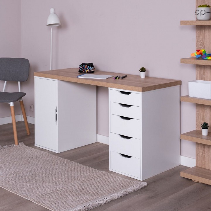 Компоненты, входящие в комплект: тумба:, 1 дверца, 1 полка тумба:, 5 ящиков
