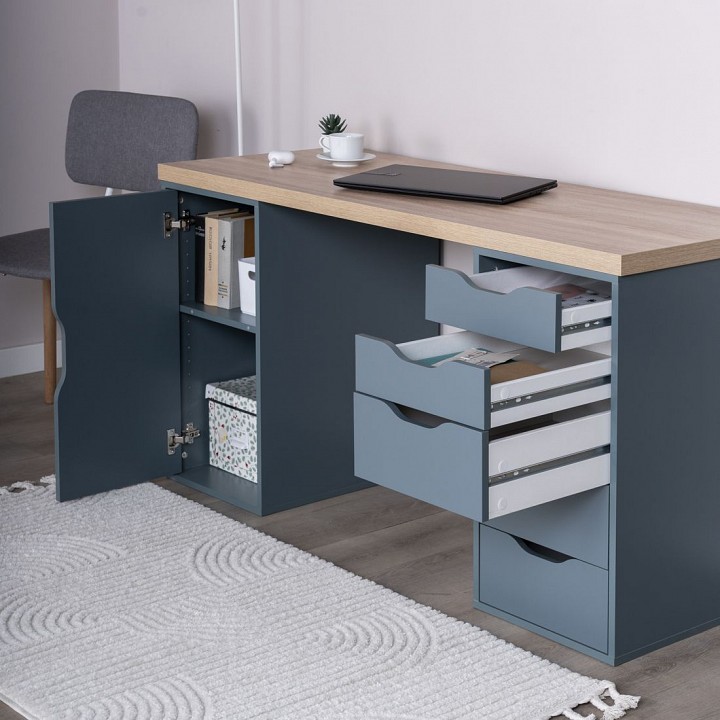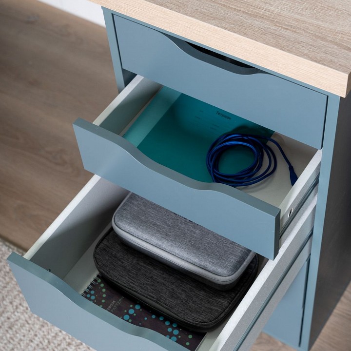 Дополнительные параметры: материал — ДСП, тамбурат, цвет — дуб беленый, серо-бирюзовый