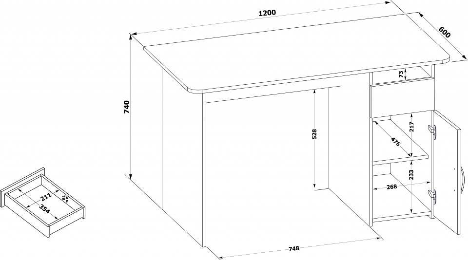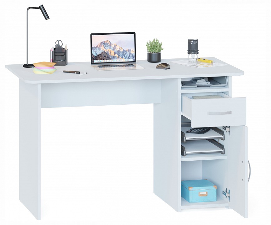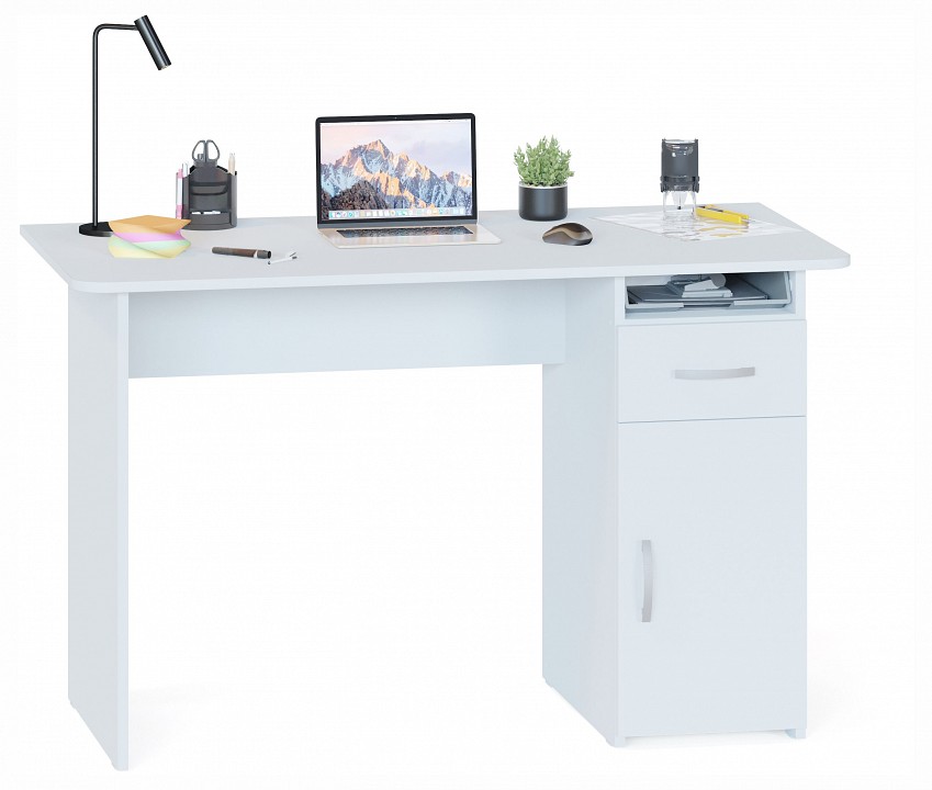 Классический письменный стол шириной 1200 мм со встроенной тумбой. Просторная столешница позволит удобно расположиться за столом и работать с большим объемом документов. Тумба оснащена открытой нишей, выдвижным ящиком и закрытой полкой. Внутренний размер ящика составляет 382 х 223 мм, что позволит разместить в нем документы формата А4, канцелярские принадлежности и необходимые мелочи. Стол универсален при сборке (вы можете расположить тумбу как справа, так и слева). Стол изготовлен из высококачественного ламинированного ДСП российского производства толщиной 16 мм, края столешницы скруглены и отделаны противоударным кромкой ПВХ. Задняя стенка сделана из ДВП белого цвета. Изделие поставляется в разобранном виде. Хорошо упаковано в гофротару вместе с необходимой фурнитурой и подробной инструкцией по сборке. Простой строгий стол прекрасно впишется в интерьер комнаты или офиса.