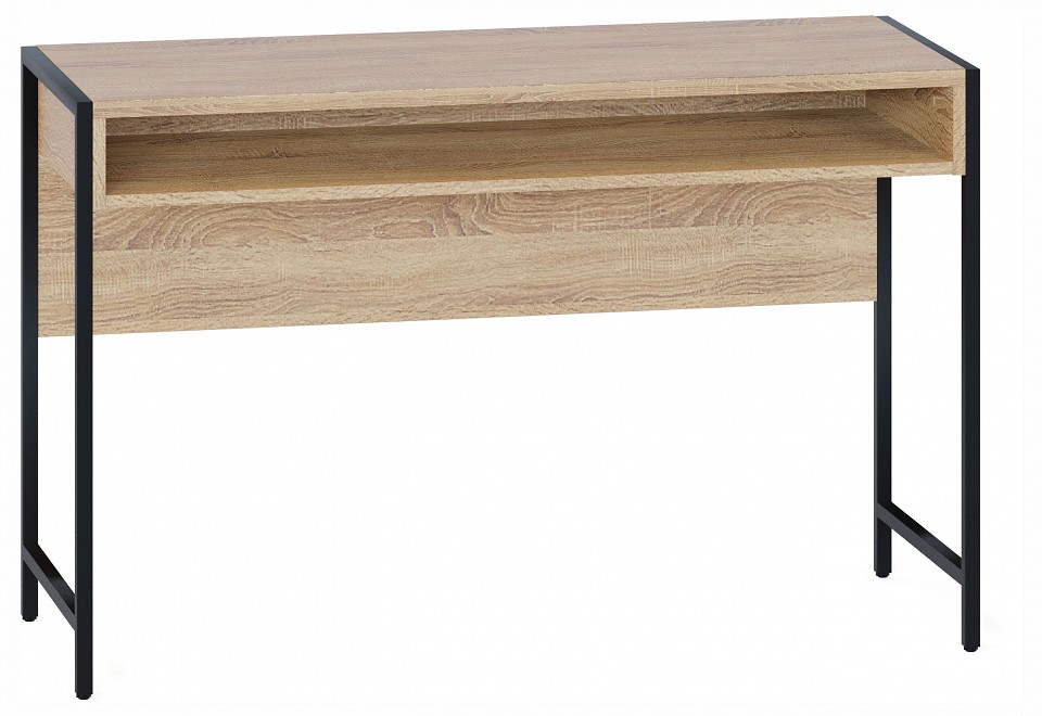 Модель облегченного письменного стола СПМ-401 — отличный выбор для обустройства стильного домашнего офиса или рабочего места для учебы. Модный стиль лофт смотрится эффектно благодаря металлическим черным опорам с регулируемыми подпятниками и столешнице толщиной 22 мм с противоударной кромкой. Открытая ниша под столешницей станет удобным местом хранения документов для работы и сделает стол визуально легким. На столешнице шириной 1130 мм и глубиной 449 мм разместятся все необходимые рабочие принадлежности и техника. Материал опоры: металл. Материал столешницы: ЛДСП толщиной 22 мм, кромка ПВХ 2 мм. Материал каркаса: ЛДСП толщиной 16 мм, кромка ПВХ 0,4 мм.