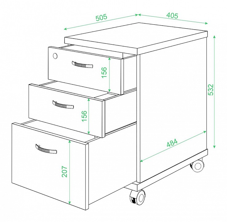 Компоненты, входящие в комплект: колесики, 3 ящика