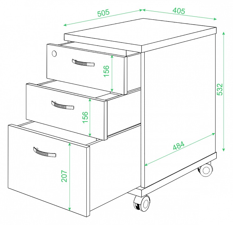 Компоненты, входящие в комплект: колесики, 3 ящика