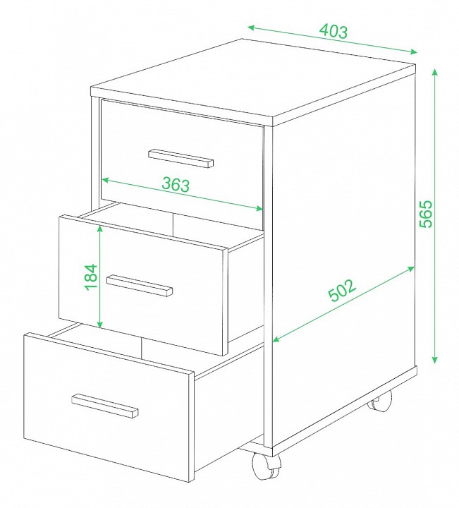 Компоненты, входящие в комплект: колесики, 3 ящика