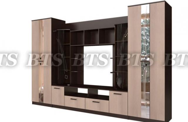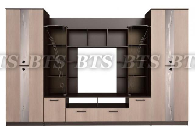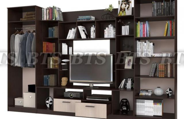 В центральной секции можно разместить большой современный телевизор, а в удобные ниши войдёт необходимое видео и аудио оборудование.