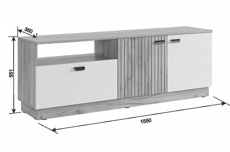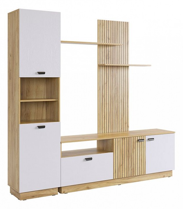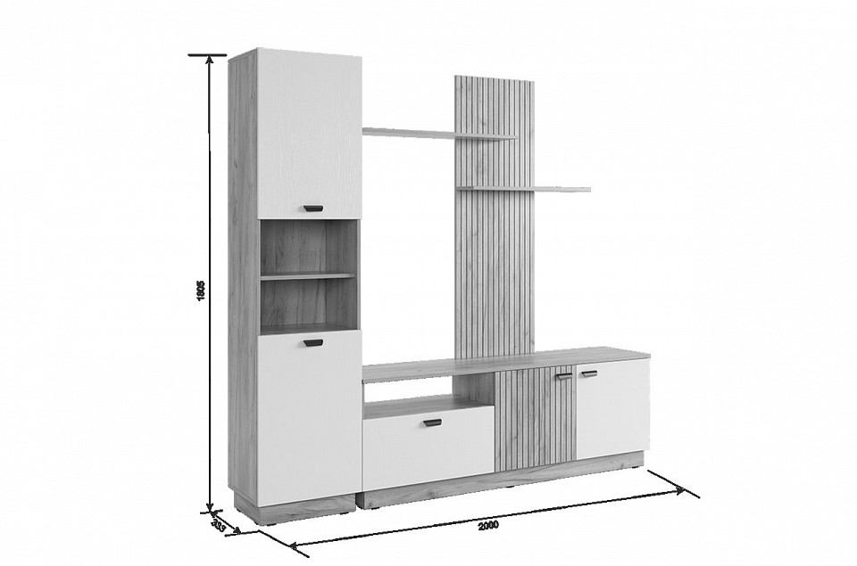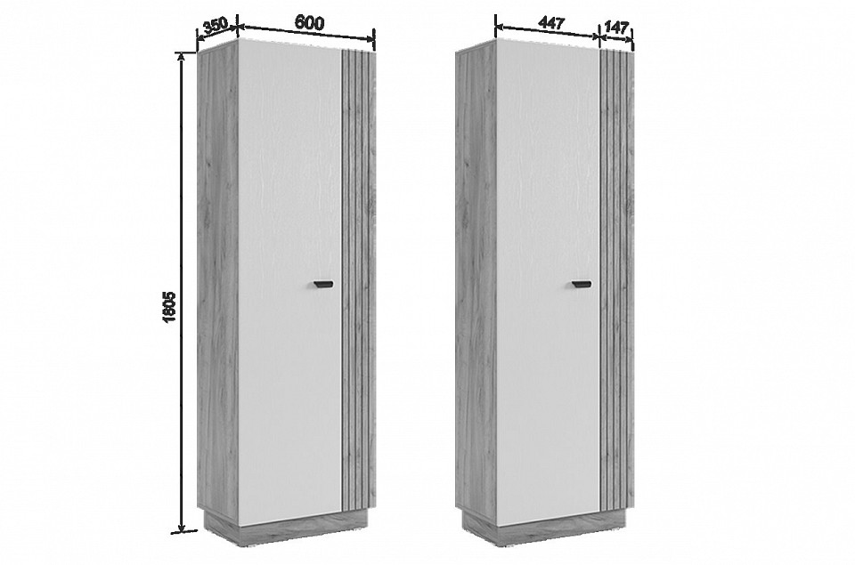 Компоненты, входящие в комплект: надстройка — 1325x166x1334 мм, тумба — 1550x350x550 мм, шкаф комбинированный — 450x350x1885 мм, шкаф платяной — 600x350x1885 мм