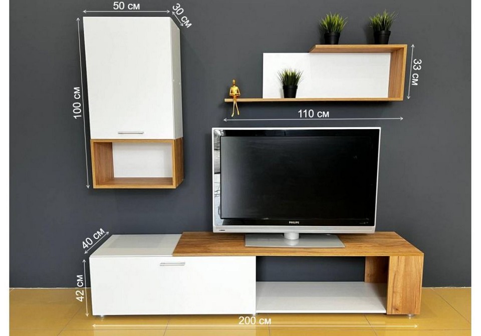 Компоненты, входящие в комплект: полка — 1100х200х330 мм тумба — 2000х400х420 мм шкаф — 500х300х1000 мм