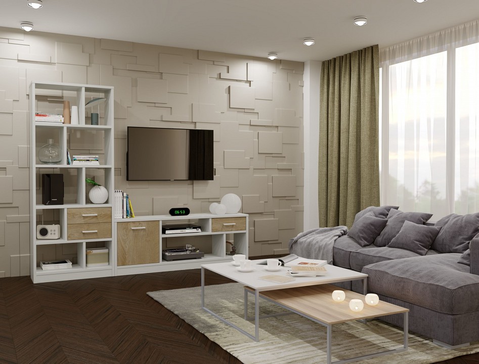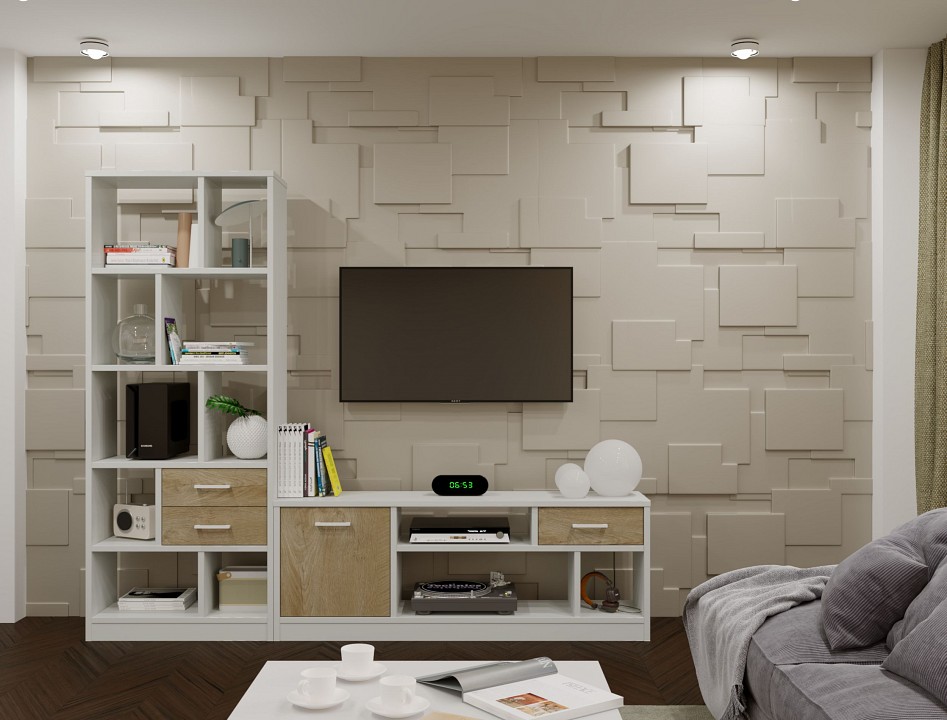 Компоненты, входящие в комплект: тумба под ТВ — 1600x350x600 мм стеллаж комбинированный — 800x350x2000 мм