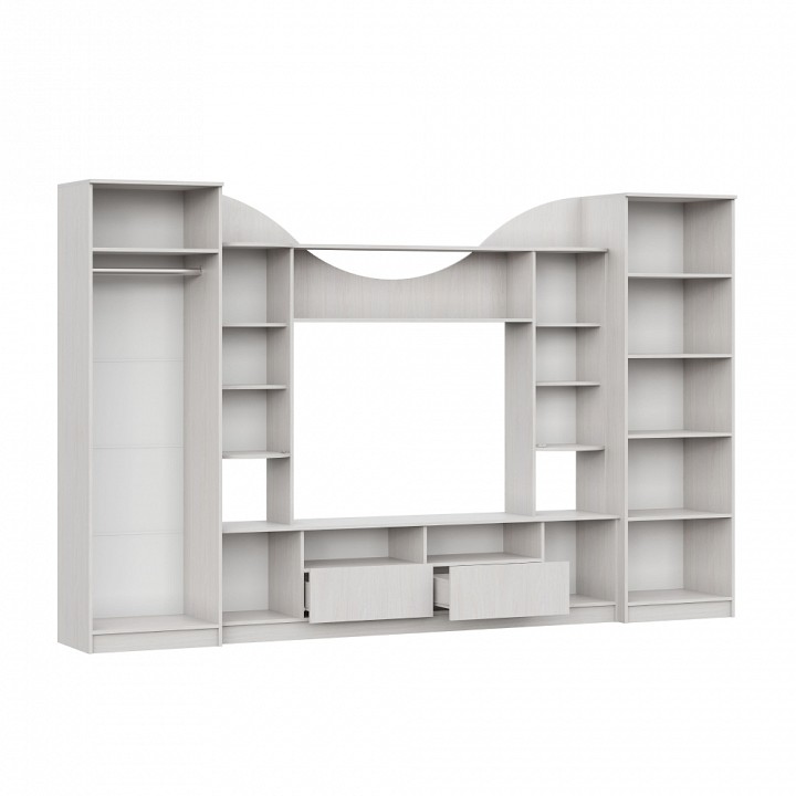 Компоненты, входящие в комплект: 1 штанга для вешалок, 2 ящика, 4 дверцы, 16 полок