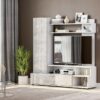 Компактный гарнитур для гостиной МГС 9 в цвете цемент светлый прекрасно впишется в современную обстановку. Модель отличается небольшим размером и обилием открытых зон хранения.