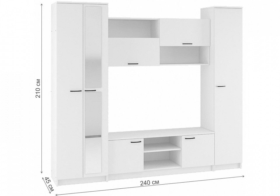 Компоненты, входящие в комплект: 1 выдвижная штанга для вешалок, 7 дверц, 11 полок