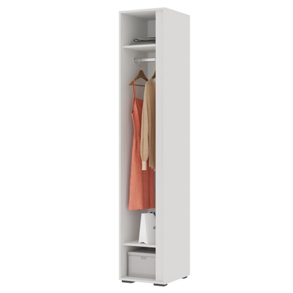 Шкаф-пенал Хелен 02 имеет форму высокого и узкого шкафа. Он отлично вольется в интерьер гостиной, детской или спальной комнаты и предназначен для хранения вещей. Шкаф состоит из трех выдвижных полок снизу и четырех открытых полок, на которых вы можете расположить книги, фотографии или декоративные предметы интерьера.