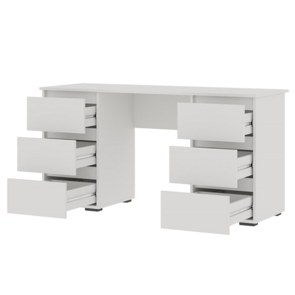 Стол Хелен ПС 02 отлично подойдет в качестве письменного стола для учащегося, рабочего места для ноутбука или как туалетный столик. Благодаря удачному сочетанию привлекательности и функциональной конструкции, он легко вольется практически в любой стиль интерьера. К удобной и широкой поверхности прилагаются целых шесть выдвижных ящика, где можно разместить косметику и аксессуары или письменные принадлежности и учебники.