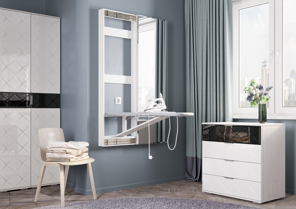 Интерьерная гладильная доска «Смарт»- уникальная конструкция, в закрытом виде представляющая собой современное настенное зеркало с фацетом.