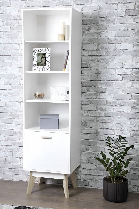 Стильный белый напольный шкаф Радиорама 2105 в скандинавском стиле — это универсальный предмет мебели для хранения вещей, который будет органично смотреться в любой комнате квартиры, дома и дачи. В гостиной для сувениров и фотографий, на кухне для посуды, в детской для книг и игрушек, на балконе для цветов, в спальне для одежды, в кабинете для документов. Каждая открытая полочка может использоваться как книжная или для атмосферных сувениров, а закрытый ящик — для мелочей, которые легко потерять. Глубина шкафа Радиорама узкая, всего 40 см, поэтому он займет минимум пространства и подойдет для малогабаритной комнаты и отлично впишется в детскую. Стойкое покрытие и эко стиль дают возможность использовать шкаф Радиорама 2103 и как дачную мебель. Деревянный шкаф с ящиками изготовлен из ламинированной лдсп, покрыт дополнительным слоем, защищающим от влаги и перепадов температур. Поэтому его можно смело использовать как кухонный или детский шкаф, в качестве полки в ванной или на балкон, увезти на дачу и не бояться, что он испортится.