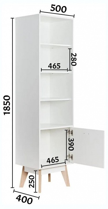 Компоненты, входящие в комплект: 1 дверца, 4 полки