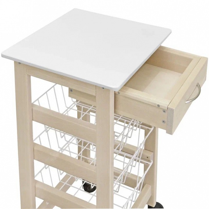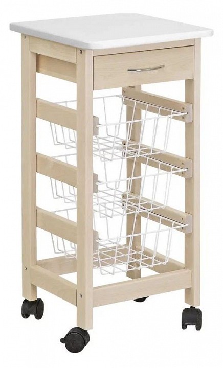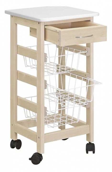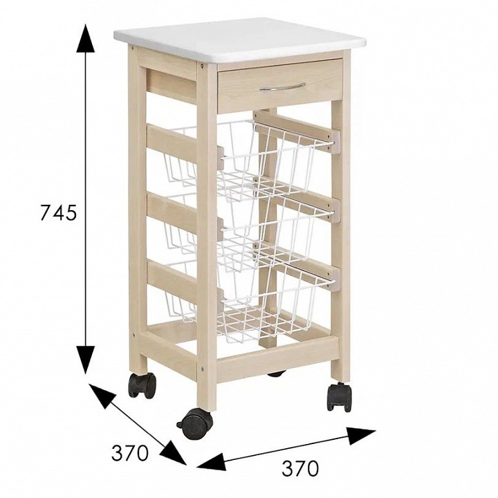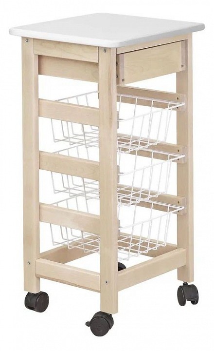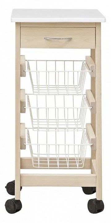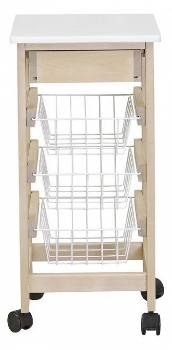 Тумба с ящиком и корзинами подойдёт для хранения небольших вещей. Её дизайн прост и сдержан. Модель компактная, поэтому удачно впишется даже в ограниченное пространство. Тумбочка на колёсиках очень удобна, ведь её в любой момент можно без труда переместить. Металлические ящики тумбы легко выдвигаются.